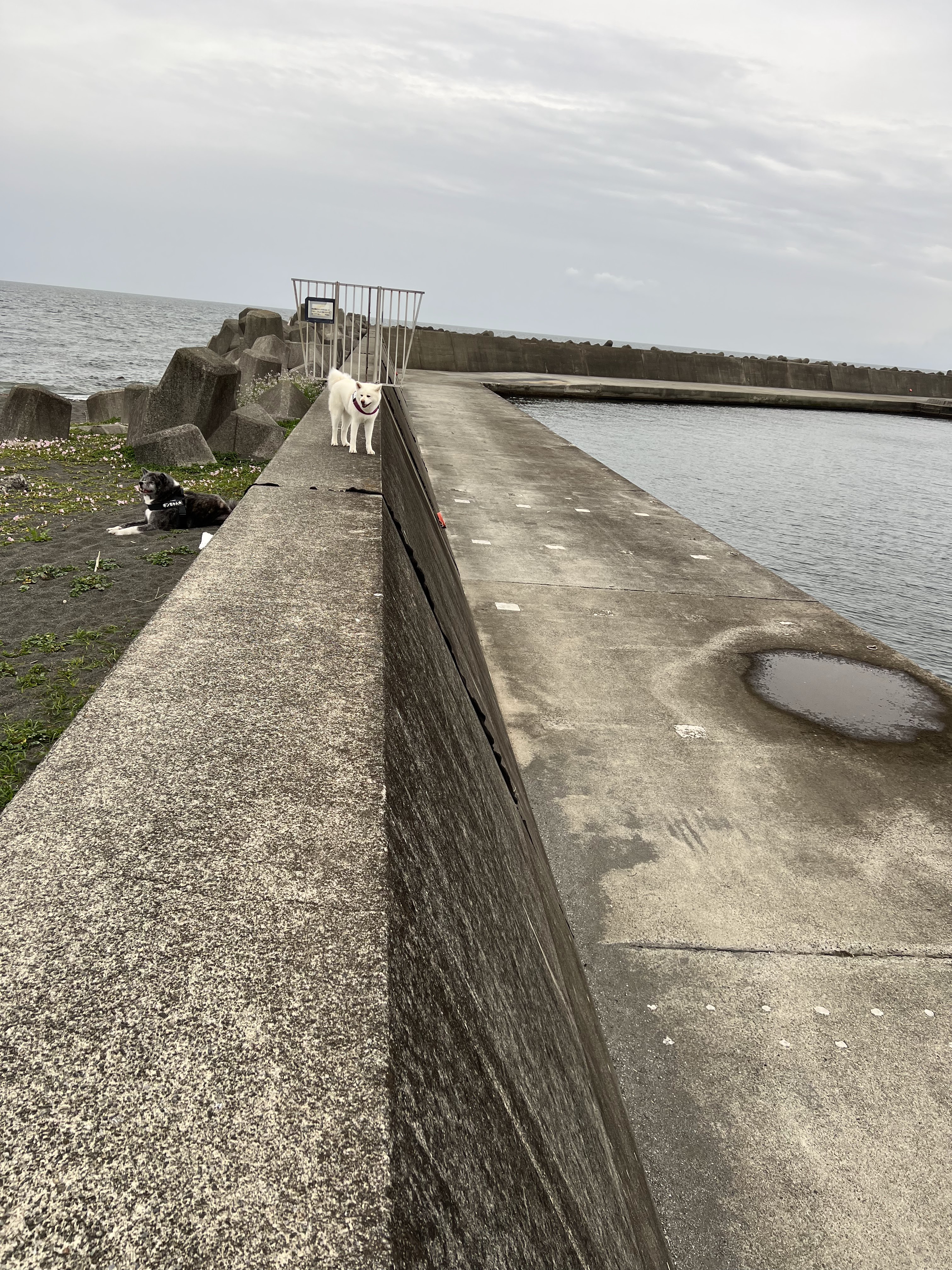 今日の夕散歩は、玉三郎漁港の横の秘密の砂浜で遊んだギン千代🎶